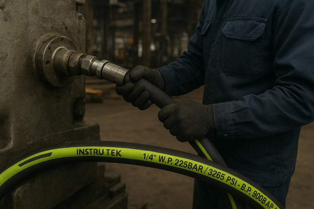 • Instalación y mantenimiento: Evitar torsión, respetar radio de curvatura, inspeccionar por abrasión o fugas, usar accesorios SAE.